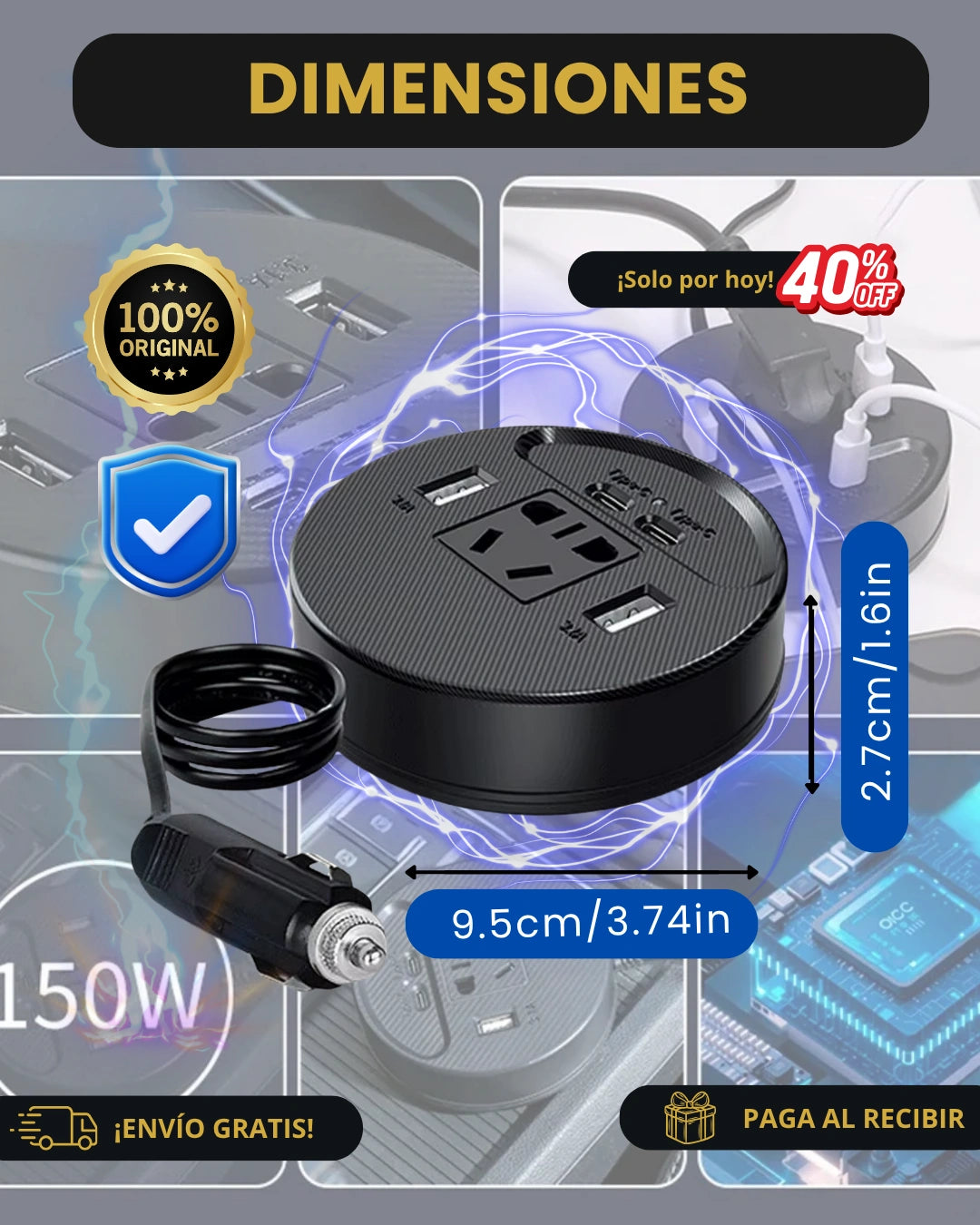 Sí. Incluye sistema de seguridad interno que protege tanto el dispositivo como tu vehículo ante sobrecalentamiento o picos de energía.